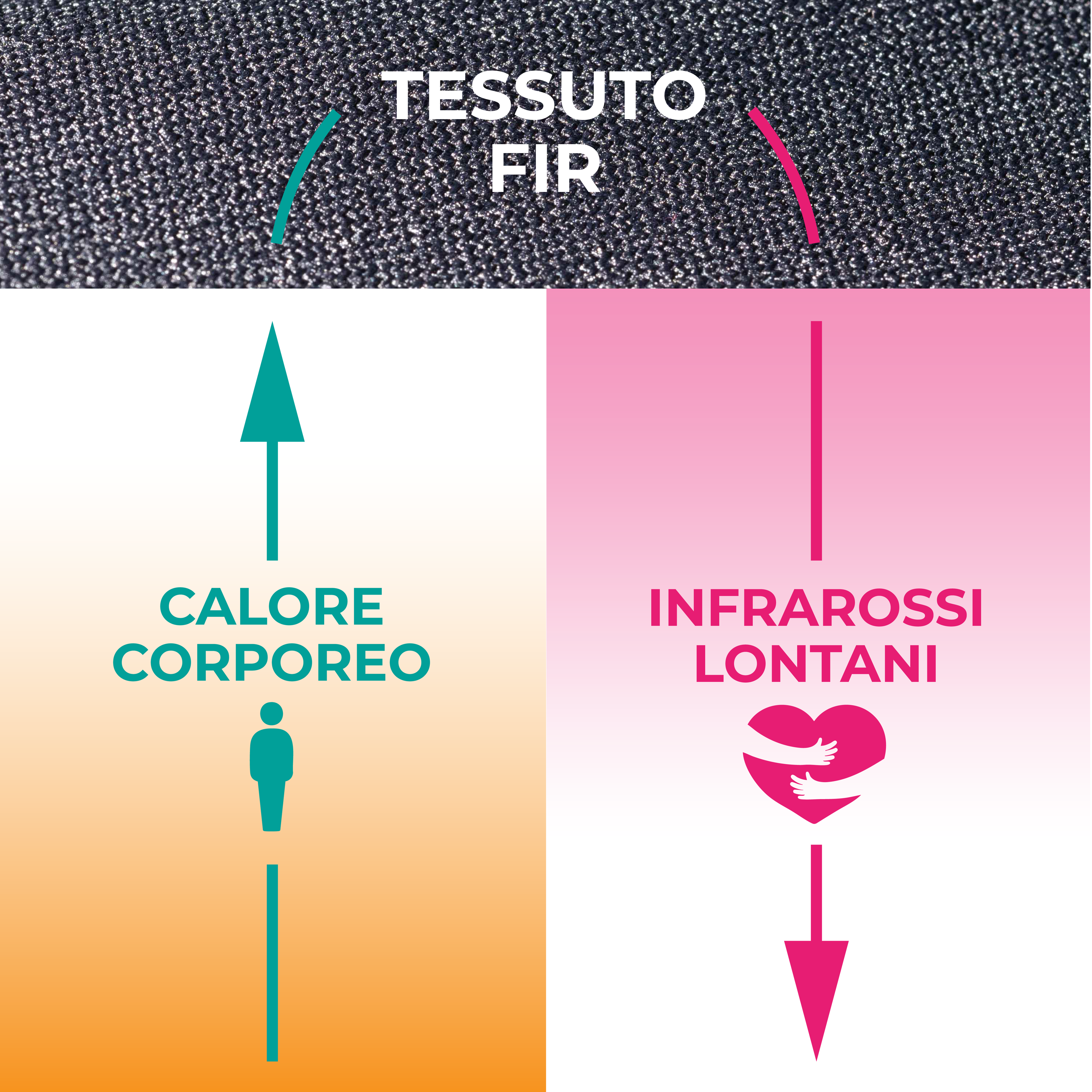 I filati FIR intercettano il calore e lo restituiscono sotto forma di raggi infrarossi lontani.